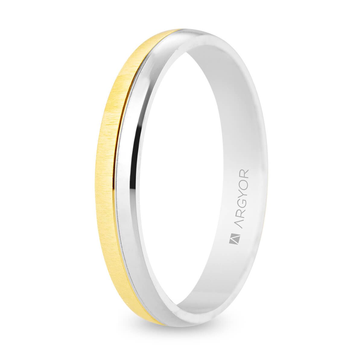 Alianza Bicolor O.A / O.B de 18k. Anchura 4.00mm. Media caña con ranura. Acabado combinado brillo/textura.