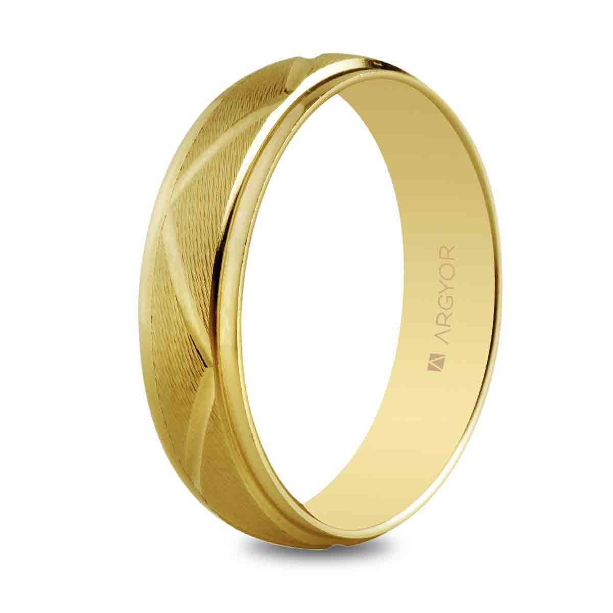 Alianza original Argyor oro de 18K 5150138 y 5 mm de ancho de nuestra colección de alianzas de oro. Esta joya tiene un acabado estriado mate y brillante y un interior plano.