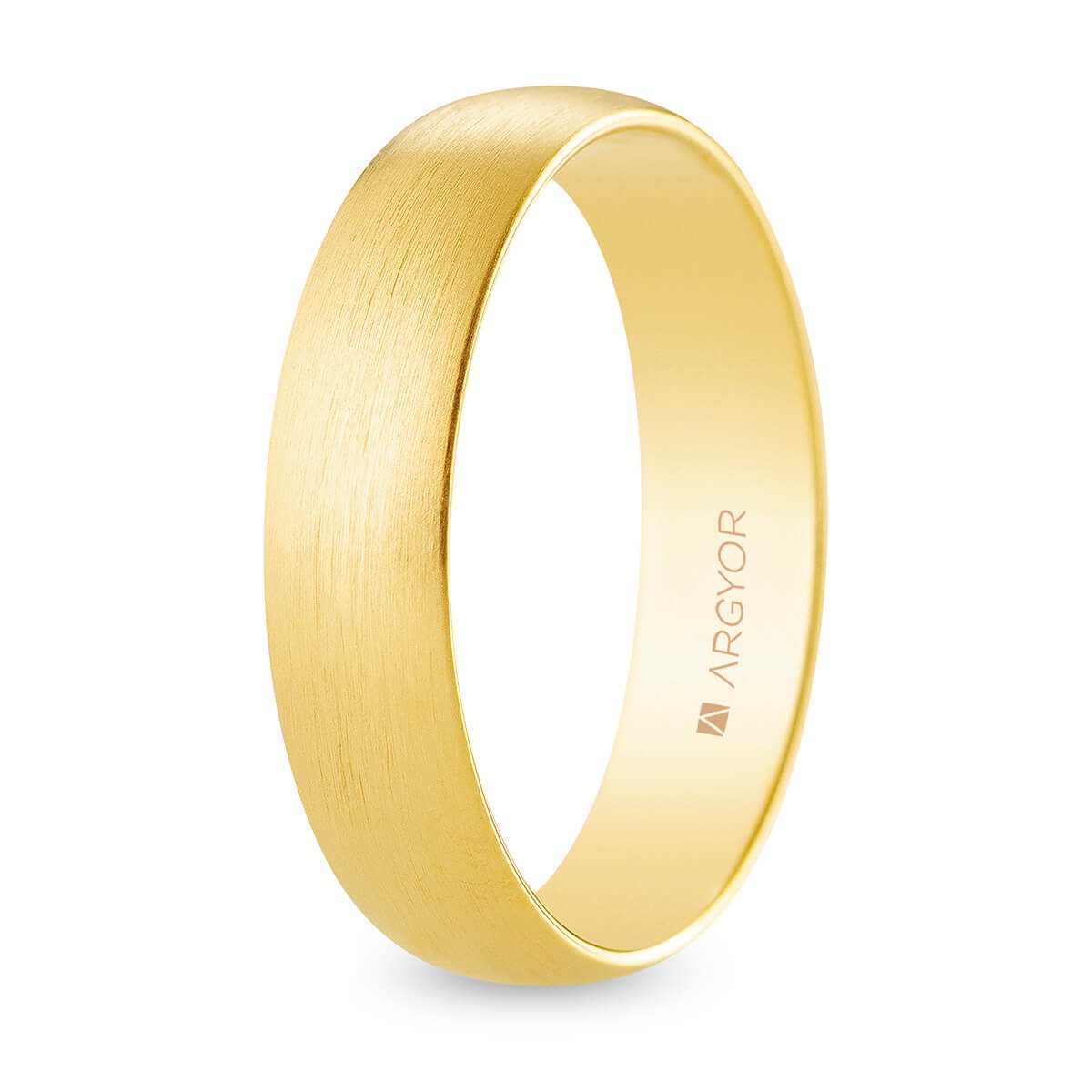 Alianza de boda. Forma media caña. Anchura 5mm interior plano. Fabricada en oro amarillo de 18k con acabado satinado. Modelo A50RS00
