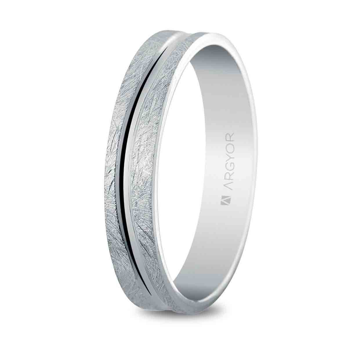 Alianza de oro blanco de diseño Argyor en 750 milésimas (18 quilates). Esta alianza de boda fue todo un éxito en nuestro Facebook 🙂 Anchura: 4 milímetros. Interior plano. Referencia: 5B40511.