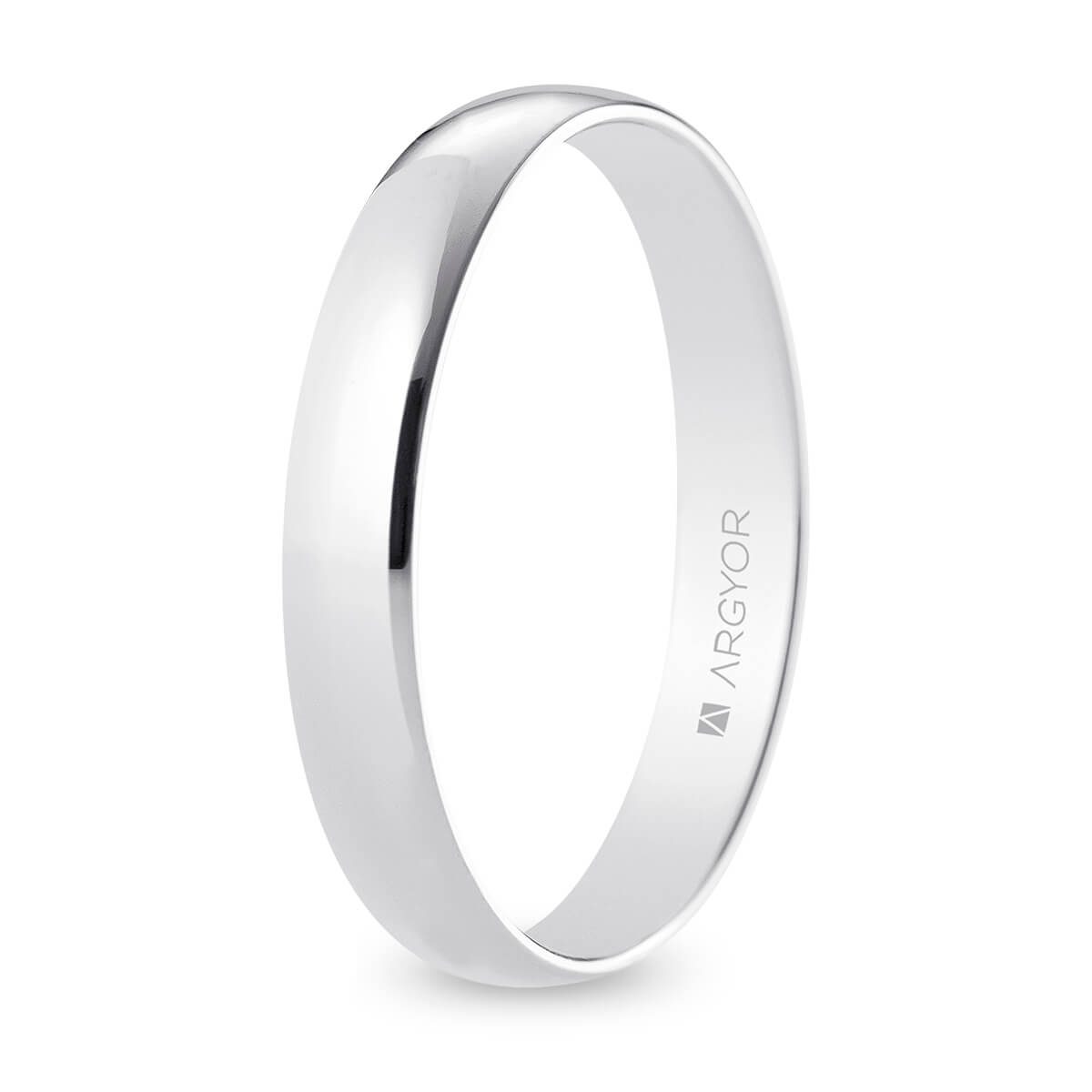 Alianza de boda. Forma media caña. Anchura 3,5 mm interior plano. Fabricada en oro blanco de 18k con acabado pulido. Modelo B35RP00