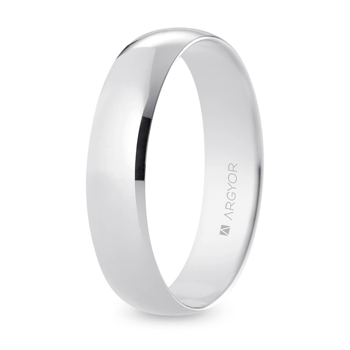 Alianza de boda. Forma media caña. Anchura 5 mm interior confort. Fabricada en oro blanco de 18k con acabado pulido. Para mayor confort el interior está ligeramente bombeado. Modelo B50CP00