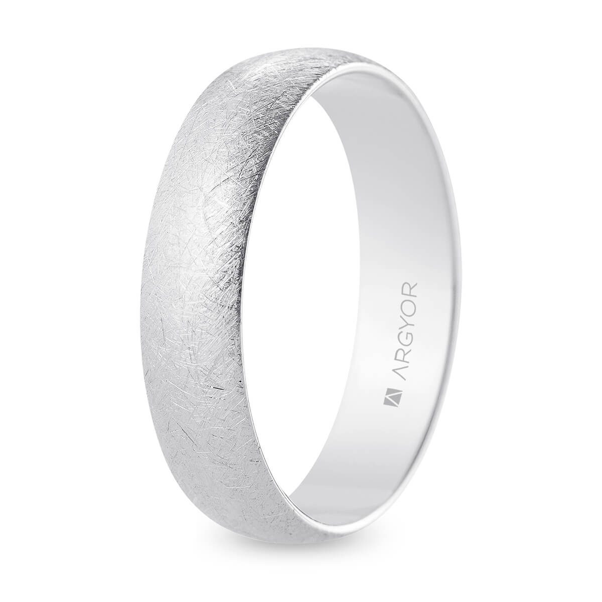 Alianza de boda. Forma media caña. Anchura 5 mm interior plano. Fabricada en oro blanco de 18k con acabado hielo. Modelo B50RH00