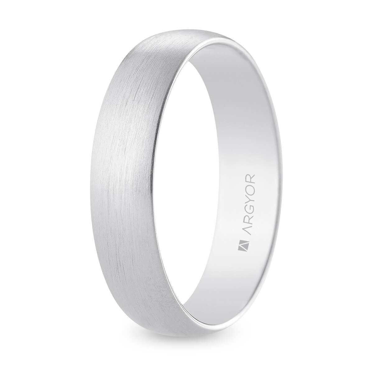 Alianza de boda. Forma media caña. Anchura 5 mm interior plano. Fabricada en oro blanco de 18k con acabado satinado. Modelo B50RS00