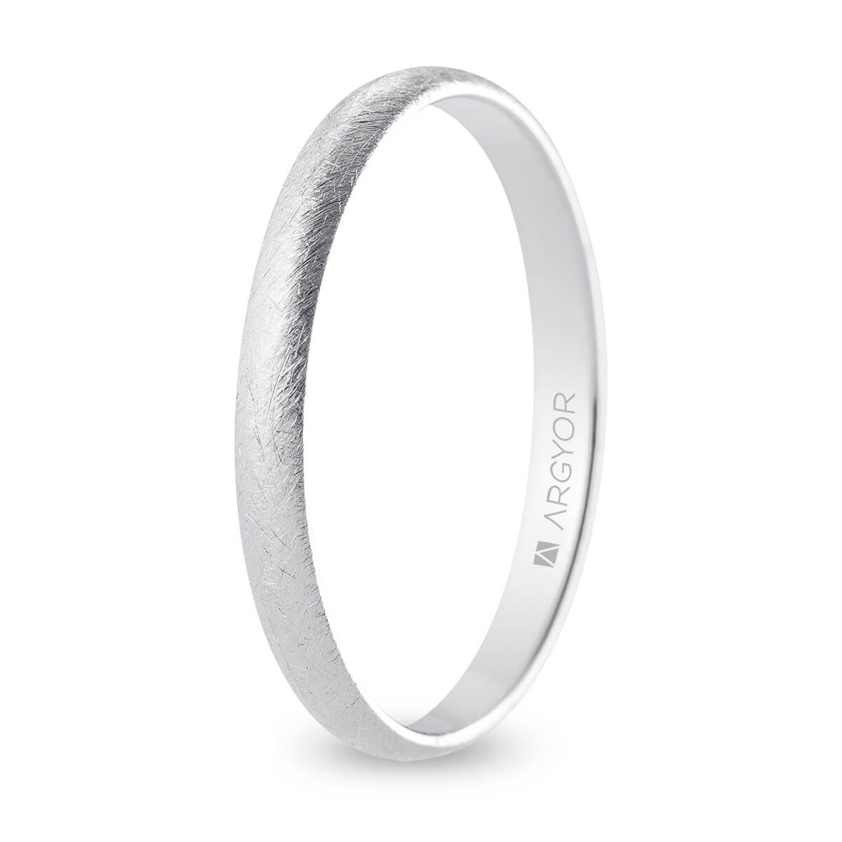 Alianza de boda. Forma media caña. Anchura 2,5 mm interior confort. Fabricada en oro blanco de 18k con acabado hielo. Para mayor confort el interior está ligeramente bombeado. Modelo B25CH00