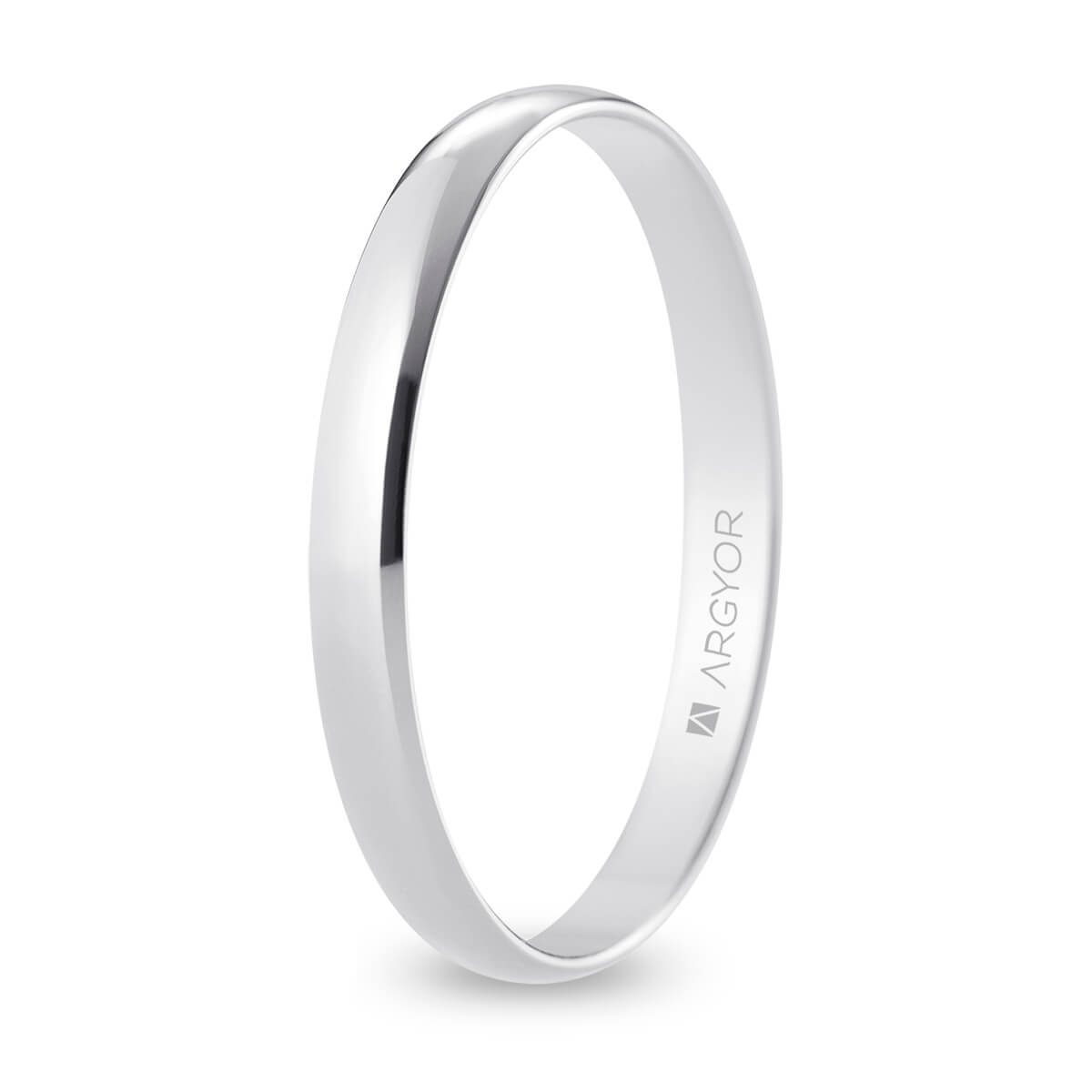 Alianza de boda. Forma media caña. Anchura 2,5 mm interior plano. Fabricada en oro blanco de 18k con acabado pulido. Modelo B25RP00