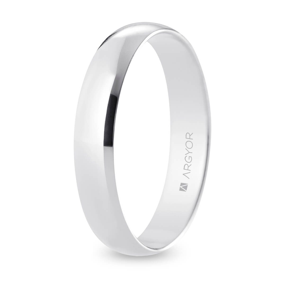 Alianza de boda. Forma media caña. Anchura 4 mm interior confort. Fabricada en oro blanco de 18k con acabado pulido. Para mayor confort el interior está ligeramente bombeado. Modelo B40CP00