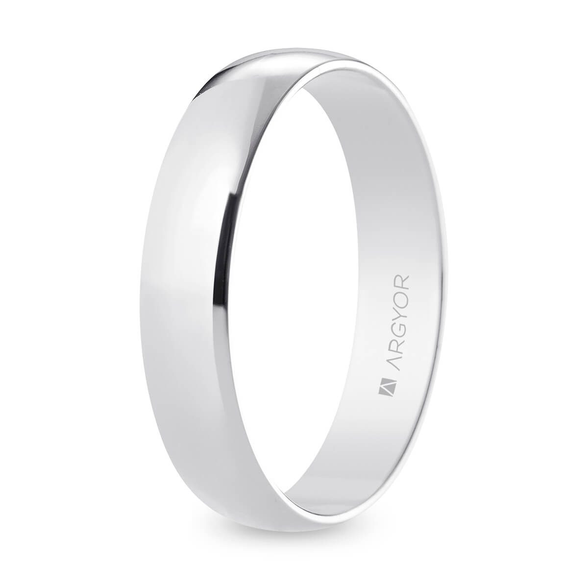 Alianza de boda. Forma media caña. Anchura 4,5 mm interior plano. Fabricada en oro blanco de 9k con acabado pulido. Modelo B45RP00.