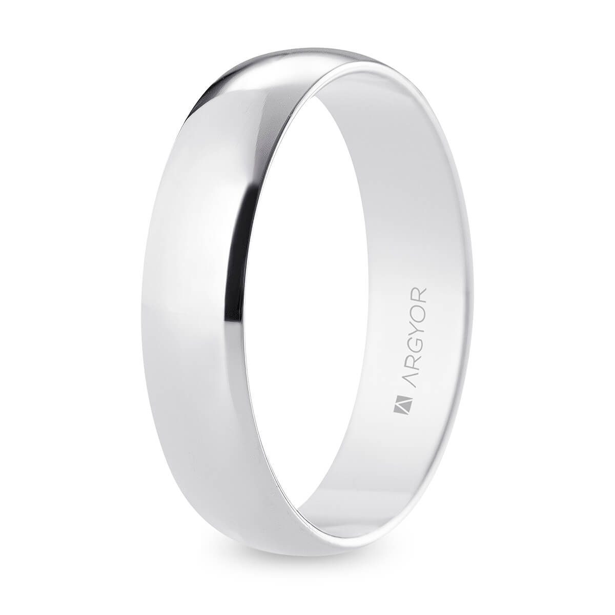Alianza de boda. Forma media caña. Anchura 5 mm interior plano. Fabricada en oro blanco de 9k con acabado pulido. Modelo B50RP00.