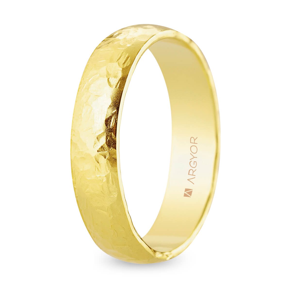 Alianza oro amarillo de 18 k de 4.50mm. Media caña. Acabado martellato fino