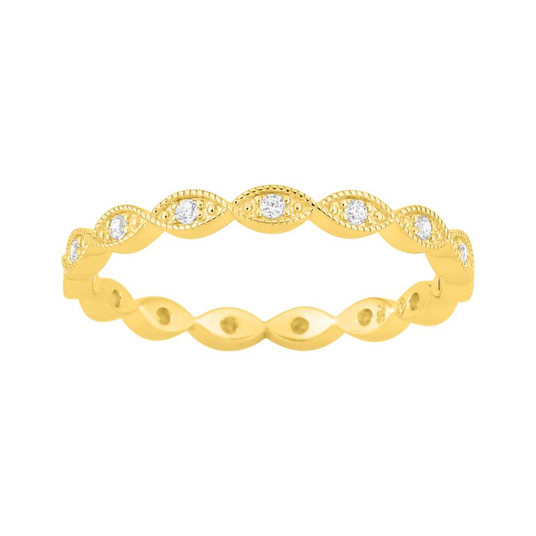 Engastados con precisión, sus diamantes talla brillante (redonda) se seleccionan en calidad GH-P1, ofreciendo un destello vivo y equilibrado que aporta personalidad al diseño sin perder delicadeza. El contraste entre el brillo del oro y la luz de las piedras convierte este anillo en una pieza versátil, moderna y atemporal.