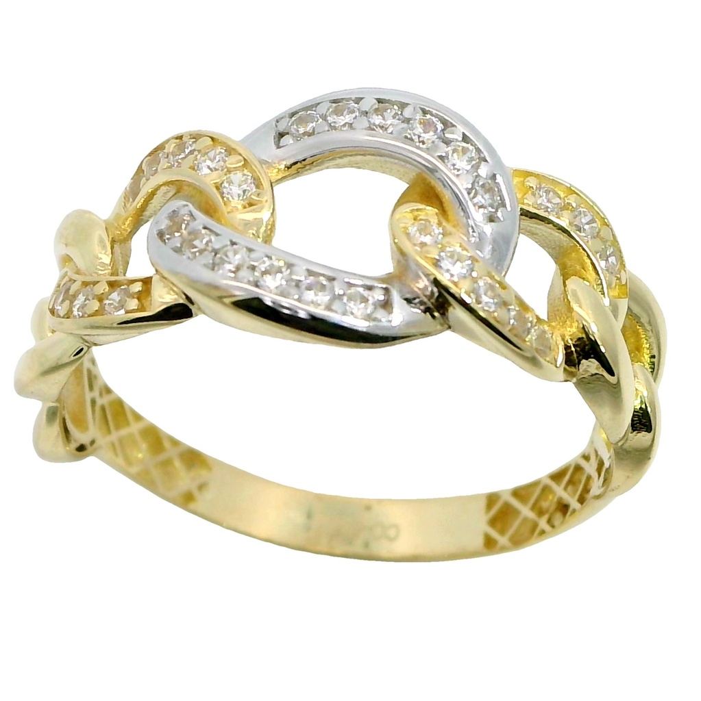 SORTIJA BICOLOR ESLABONES CON CIRCONITAS. – RG5994